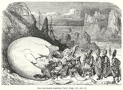Veamos un caso de lo que sucedía mucho antes de la irrupción del realismo y el género fantástico en las literaturas modernas, por ejemplo, con Las mil y una noches, un libro que en la actualidad se suele considerar sobre todo fantástico. En este texto, el segundo de los viajes de Simbad narra la aventura del famoso marino en un valle tan rico en diamantes, que estos surgían del mismo suelo. Pero también tan plagado de fieras y alimañas, que nadie se atrevía a recorrerlo. En su lugar, los buscadores de piedras preciosas lanzaban grandes pedazos de carne desde las montañas a los que se adherían los diamantes. Guiados por su apetito por esa carne, los rokhs —pájaros fantásticos que aparecen en la narración— hacían el resto. Cazaban los pedazos y los transportaban a sus nidos en las montañas. Allí los hombres los espantaban y tomaban su botín.